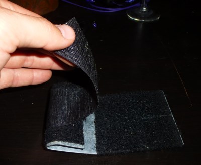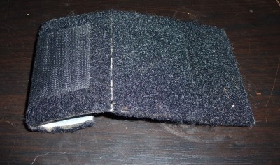 - Wrap the entire bracket with the sticky backed loop/fuzzy velcro. This should cover as many of the edges as possible. The only parts that shouldn't be covered with the velcro is the part of the bracket that is bent to hook onto the harness webbing.